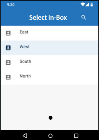 Example C: A driver in Fleet 3 selects the West inbox (left) and can view and respond to chat messages with other users in the West inbox (right) in the Transflo Mobile+ app.