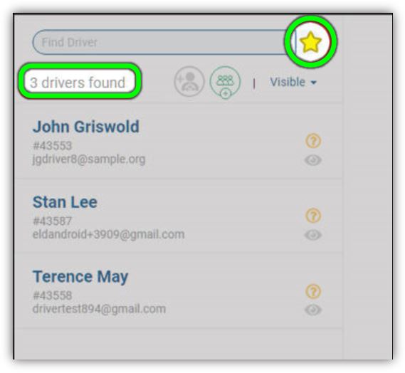 The yellow star indicates you are in Show Favorites mode. The number of favorites appears (for example, 3 drivers found).