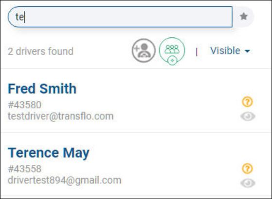Tip: Most of your time will be spent working with visible drivers. Hidden drivers cannot be assigned to any loads. Hidden entries typically represent old e-mail addresses or drivers no longer working for the carrier. To show or hide drivers, see Advanced: Manage Drivers.