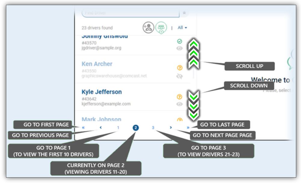 Example A: In this example, we see 23 drivers on three (3) pages.