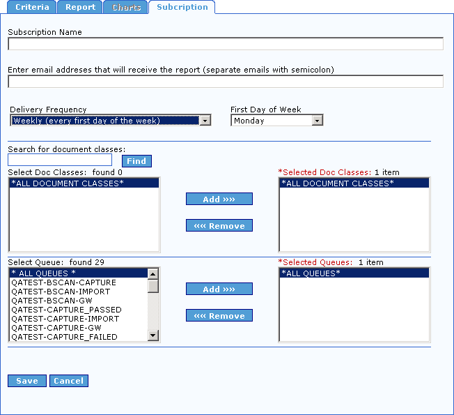 8. To save the report subscription click the Save button, otherwise click the Cancel button.
