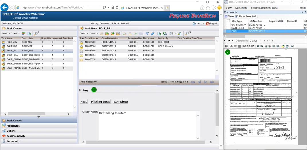 Staff and supervisors in all roles can use TRANSFLO® Workflow Web client to work with your Workflow Queues. You can view and manipulate your cases and their associated images and fields. The workflow web client also has a document list that gives you a list of documents associated with the work items in your queue and a form viewer where you can preview images of the documents.