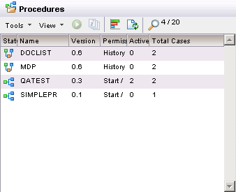 The Cases (instances of the Procedures) that belong to each of these Procedures are displayed in the Details Pane.