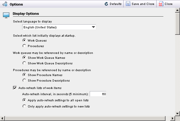 Gives you the ability to enable automatic refresh of your Work Item List and to set the time between each automatic refresh. |