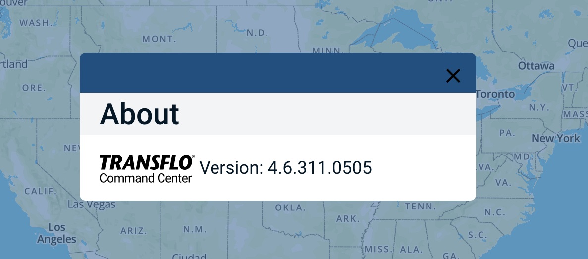You can find the version number of TRANSFLO® Command Center in the pop-up message box.