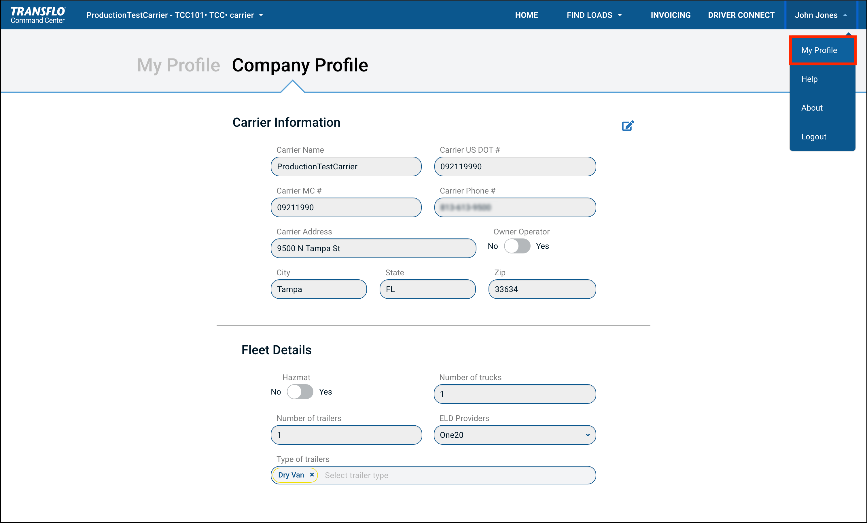 This article covers basic administrative tasks for carriers, brokers, and all users. This article provides steps that describe how to login, logout, determine your software release version, update your personal user profile, update your company profile, reset your lost or forgotten password, manage users, and set fleet permissions for brokers in the customer access management module.