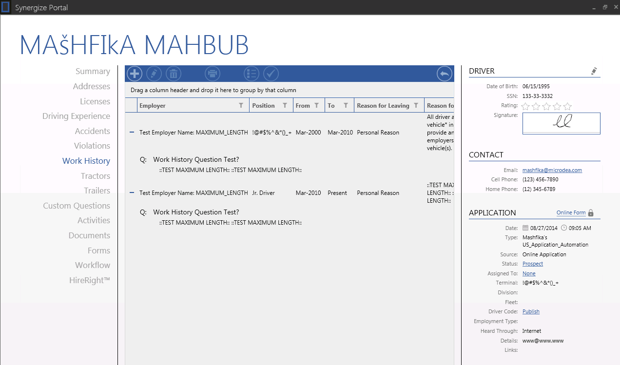 A recruiter can also delete a driving experience by highlighting it and clicking the delete icon.
