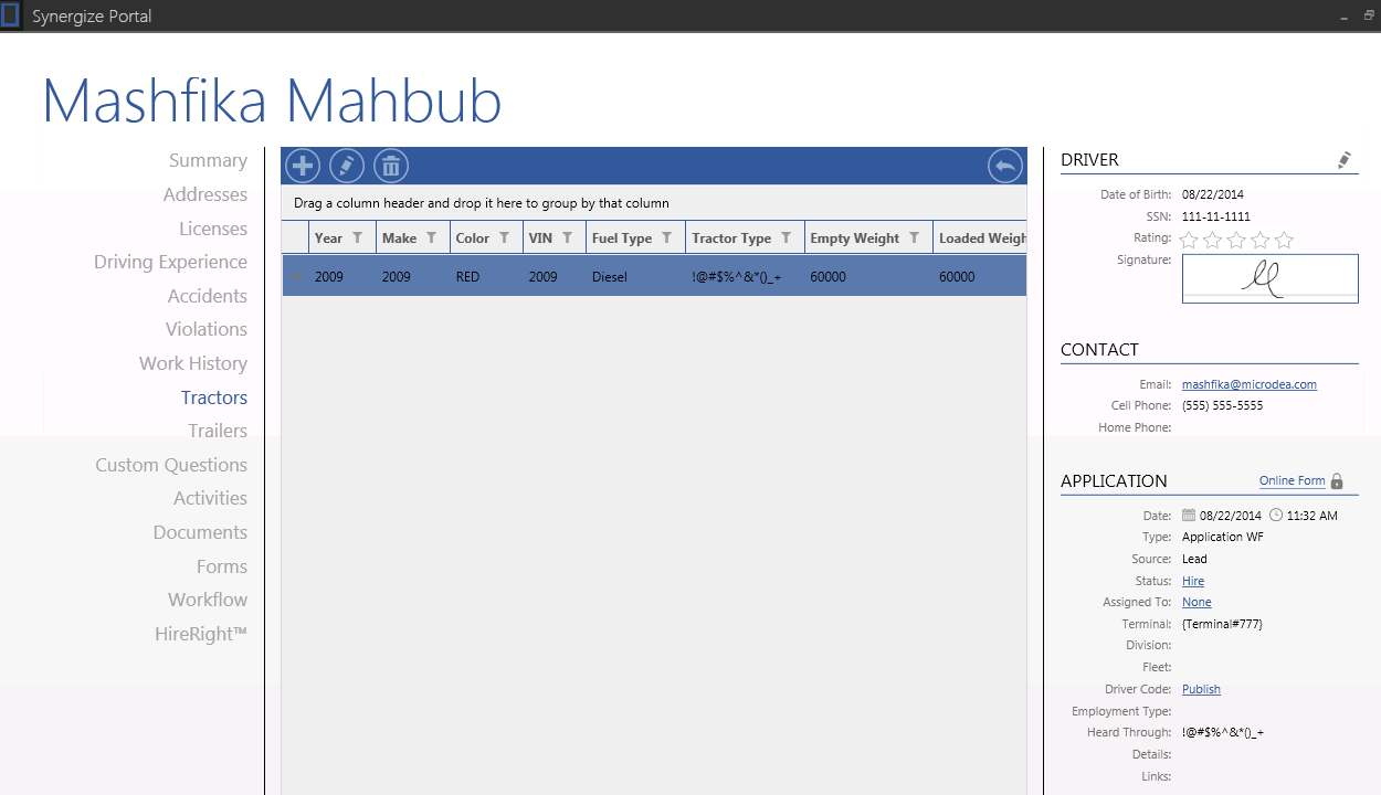 Tractors Enabled: Capture information about tractors for all drivers in the system including the online application (True/False).