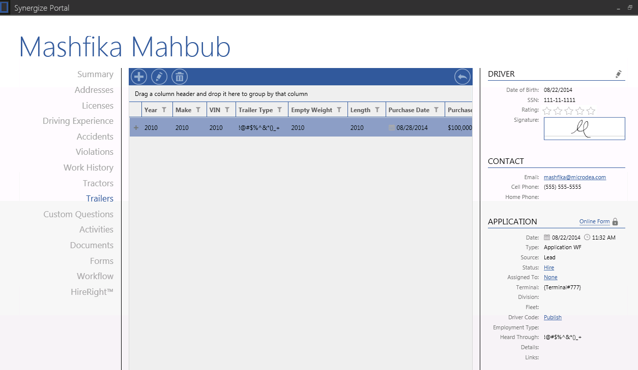 Trailers Enabled: Capture information about trailers for all drivers in the system including the online application (True/False).