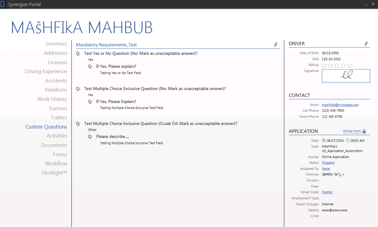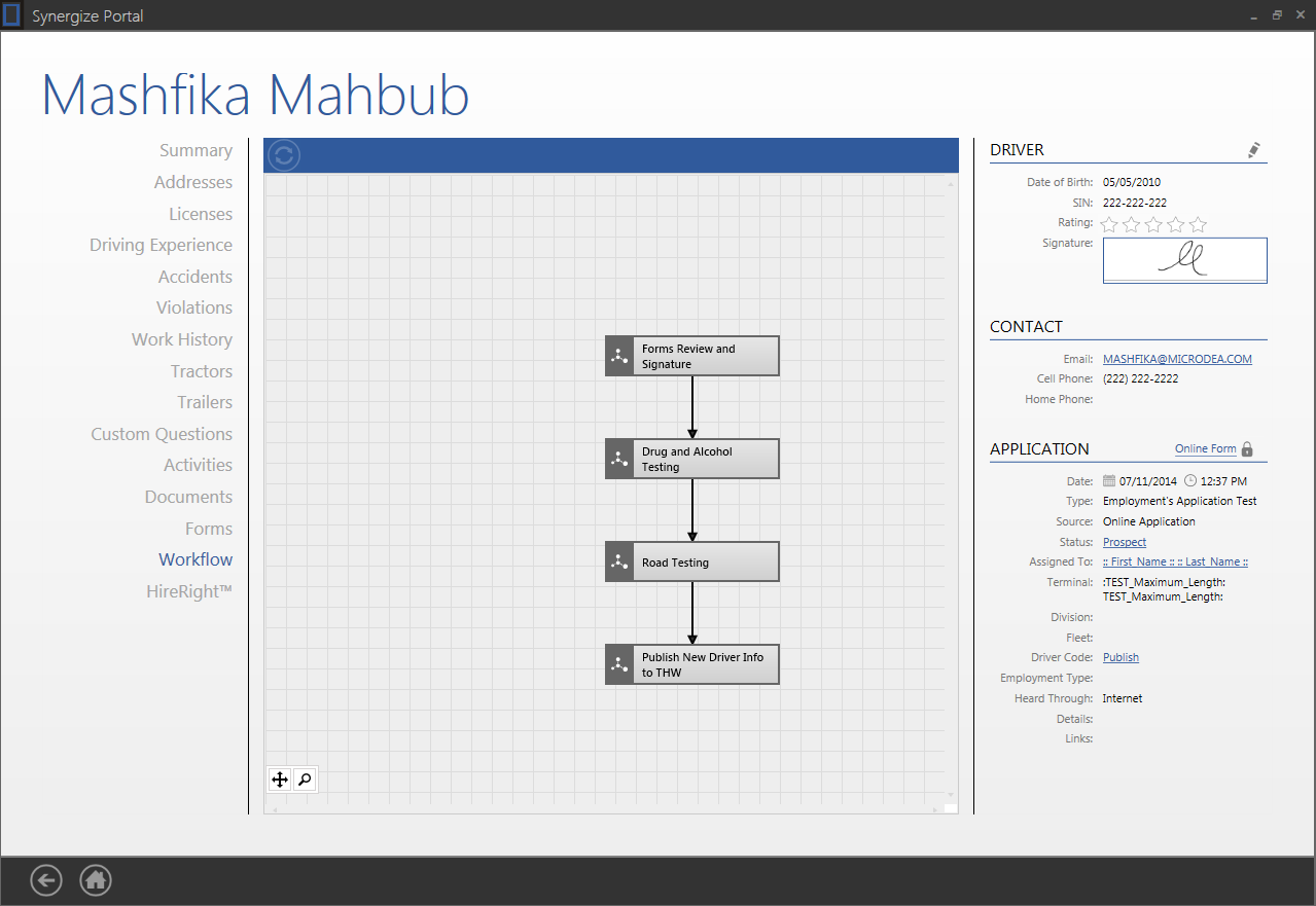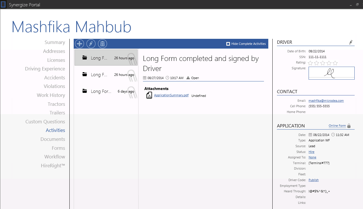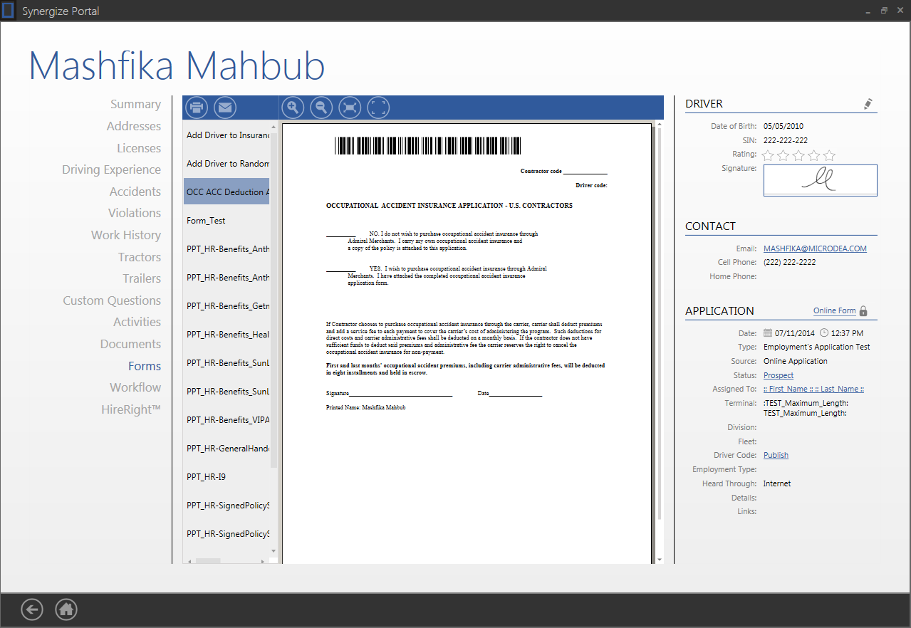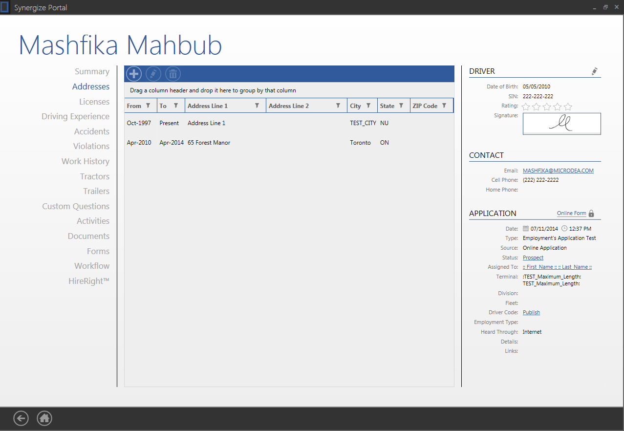 You can enter the basic information required to create a new driver in the system. You can also set the application type, application status and which recruiter this driver should be assigned to.