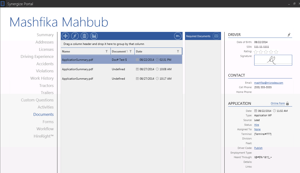 WARNING: Deleting a driver results in a complete and irreversible removal of the driver and all of their records from the system. Any driver documents in Synergize are de-referenced from the system but not deleted from the repository.