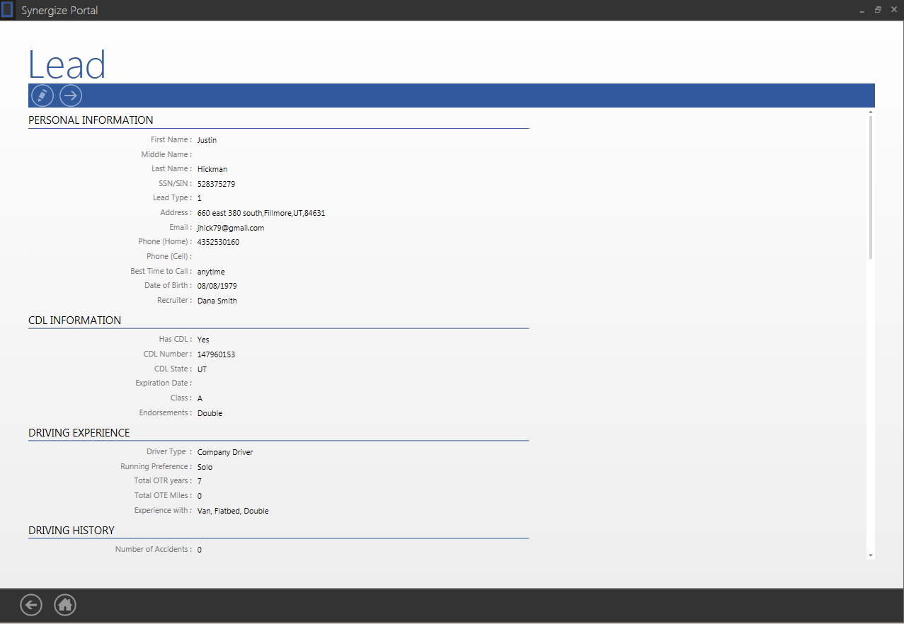 A recruiter can edit an existing accident with the same pop-up listed above, by selecting the accident and clicking the edit icon.