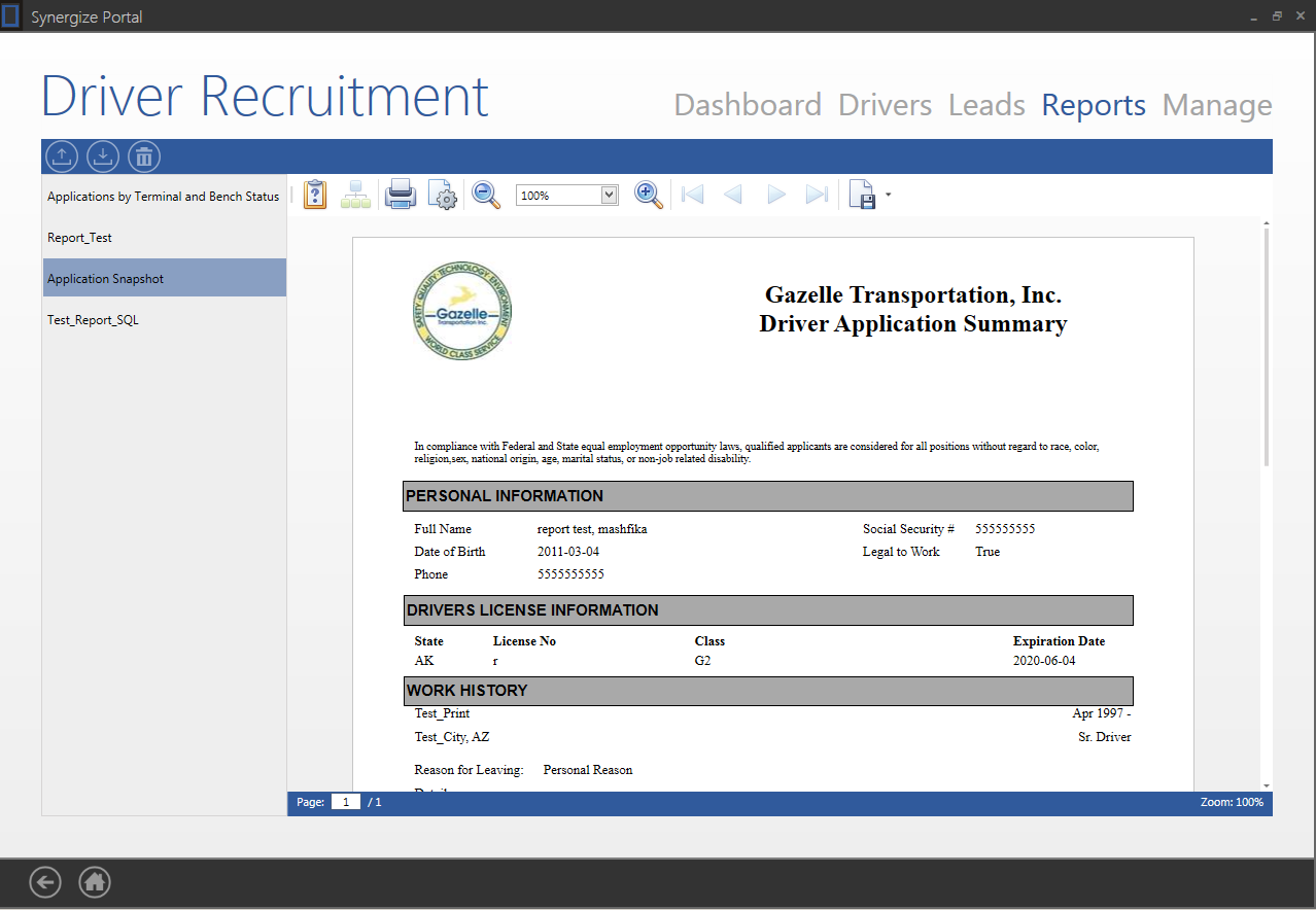 Application Summary Report: Uses a report to capture the snapshot of online application form submissions, save to Synergize and associate with the driver file.