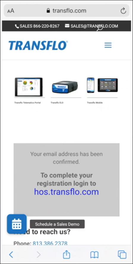 On any device (computer, tablet, or smartphone) with a network connection, go to https://hos.transflo.com.