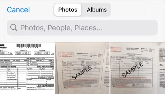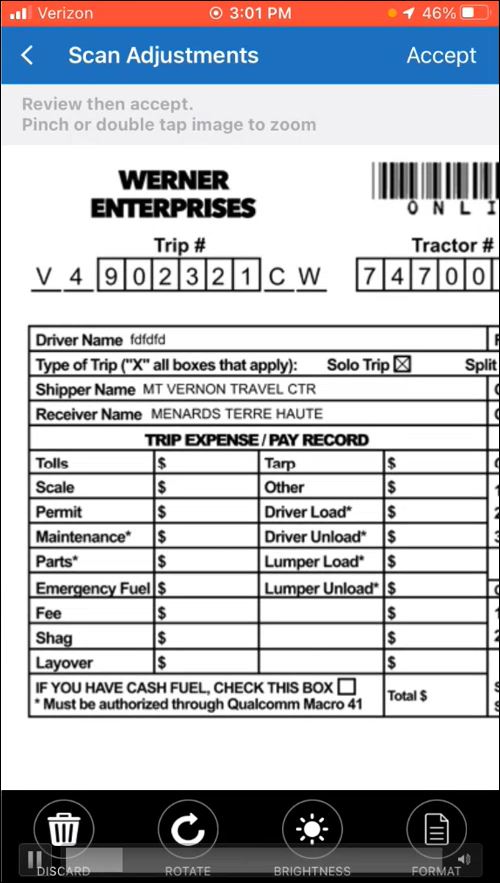 Fill the entire screen with the document. Keep your hands steady and try to remain stable when taking the picture. If you are in-cab, turn off your engine to eliminate vibration.