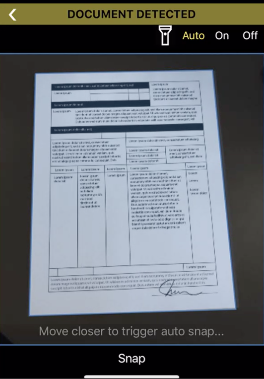 Tap Snap to take a photo of the document (or page 1 of a multi-page document).