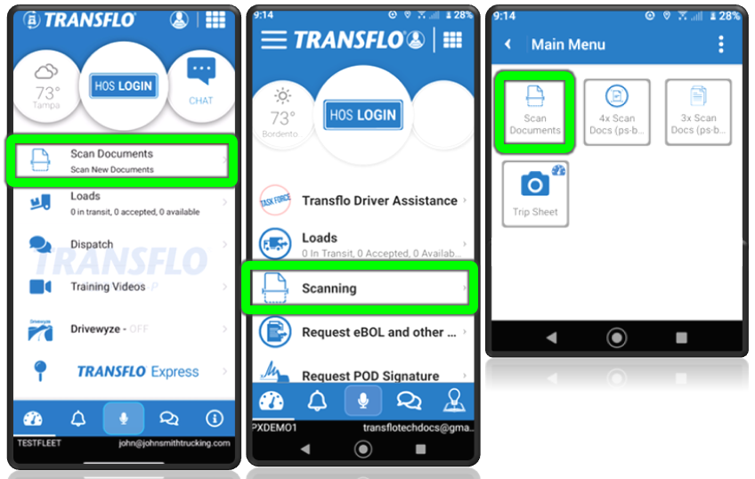 Most users can use the newer releases of Mobile+ including R6.3 or higher with updated steps to Scan and Send Load Documents. All Mobile+ app releases including the free Mobile+ app for iOS or Android, proprietary in-cab editions, SDK editions, and custom "white label" apps now use the new scanning engine. The legacy scanning functionality has been discontinued and superseded by updated new functionality.
