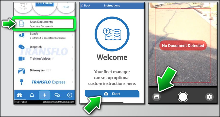 In the Transflo Mobile+ app, tap Scan Documents (your exact tile or menu name might vary).