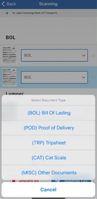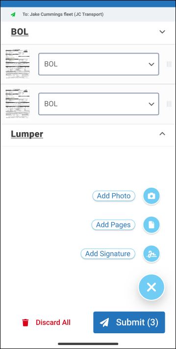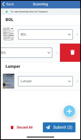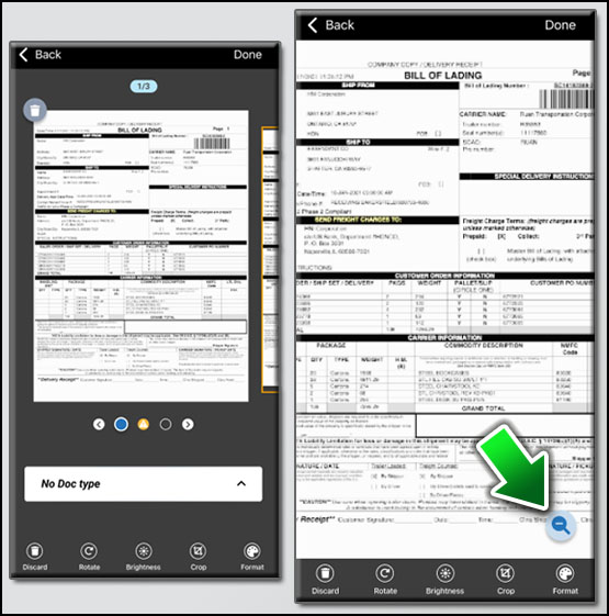 Use your favorite photo app and your built-in camera on your mobile device to snap photos of your load documents and save them to your device or cloud storage. You can lay down multiple pages and scan one photo and crop each page later or you can snap a separate photo for each document, it is up to you.