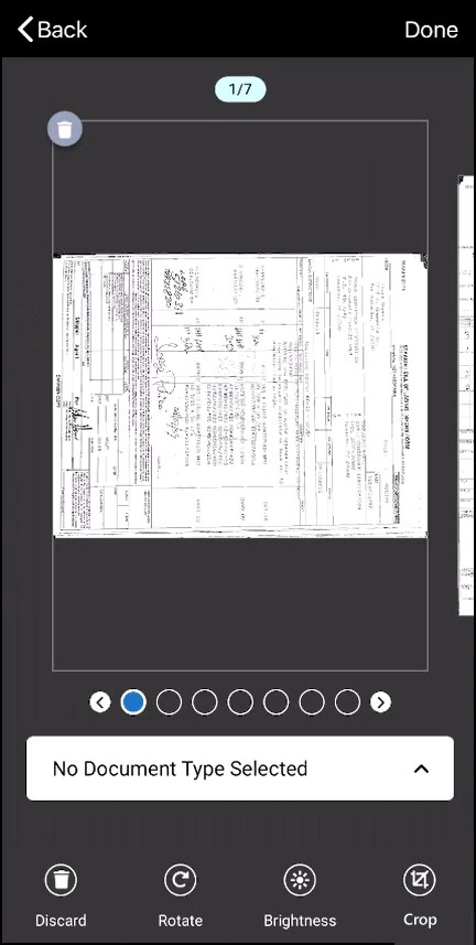 When you are finished assigning a doc type to each page and done making any adjustments, tap Next or Done.