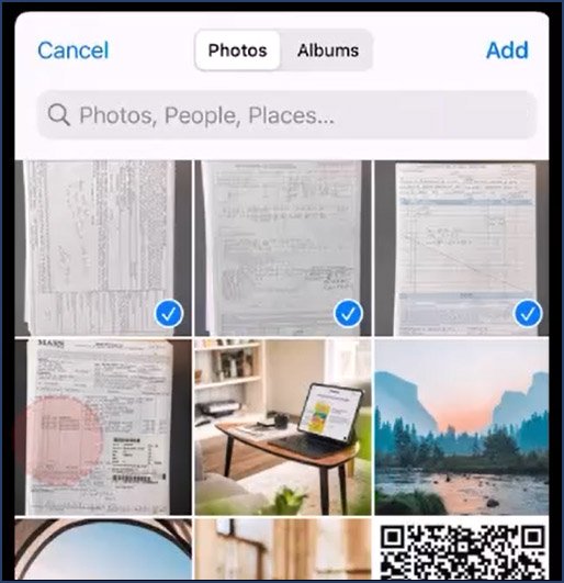 To use the Multi-Page Upload feature, tap the Add Existing Photos button in the lower left corner.