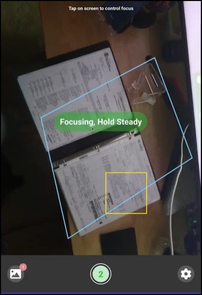To get the best focus, wait for the blue Document Detected message to appear and then take the picture yourself or let Auto Snap take it for you.