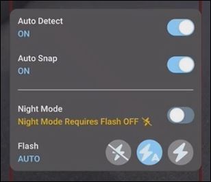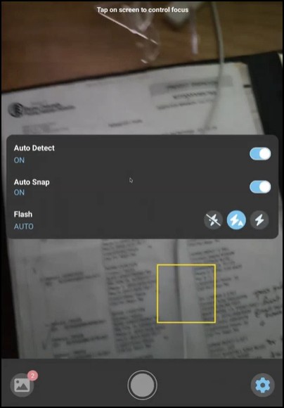 Auto Snap: This time-saving feature automatically takes the photo for you when it detects your document. If you want to take your own photos, you can turn Auto Snap OFF.