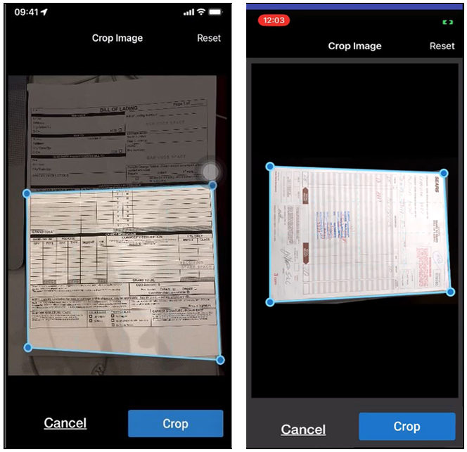 Crop Behavior: When you upload separate image files, the same crop shape behavior listed above for 6.0.1 applies (left). When you upload one or more PDF pages, you get the new 6.6 cropping behavior where the app auto detects the edges of each page in the PDF file (right).