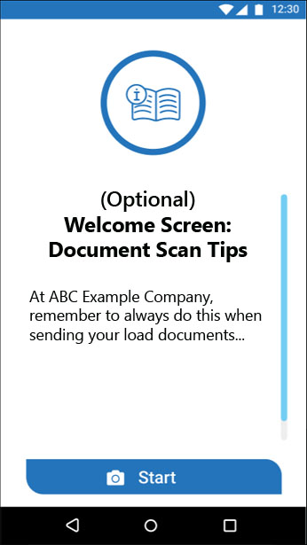 Release 6.0 of the mobile app in August 2023 included a document scanning redesign to improve the way you can detect, scan, and submit load documents. In 2024-2025, additional 6.x releases continue to enhance the product. The new screen examples below show standard user interface elements on a typical mobile phone. Similar steps apply to smart phones and tablets running Apple iOS, Google Android, or Microsoft Surface Pro devices running Microsoft Windows.
