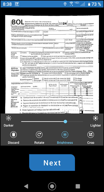 You can make any of the following optional adjustments (or, skip all adjustments and accept the current document as it is by tapping Next):