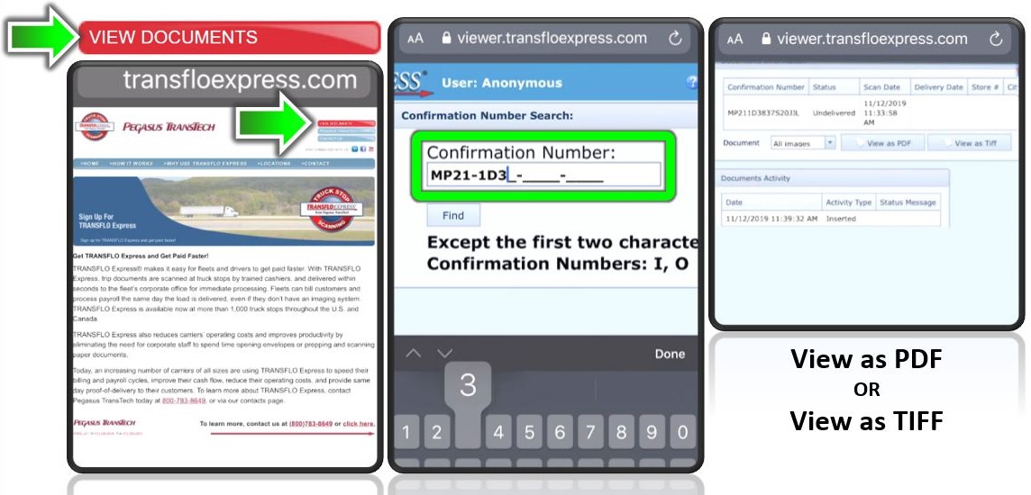 To view those documents again later (over the next 14 days), go to transfloexpress.com and enter the confirmation number.