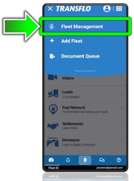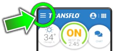 In the Transflo Mobile+ app, at top left, tap the ≡Actions menu.