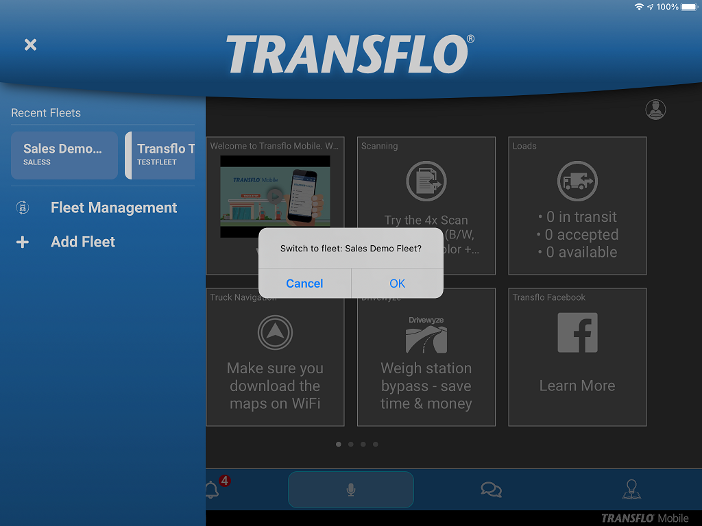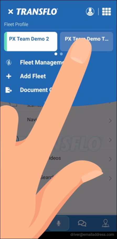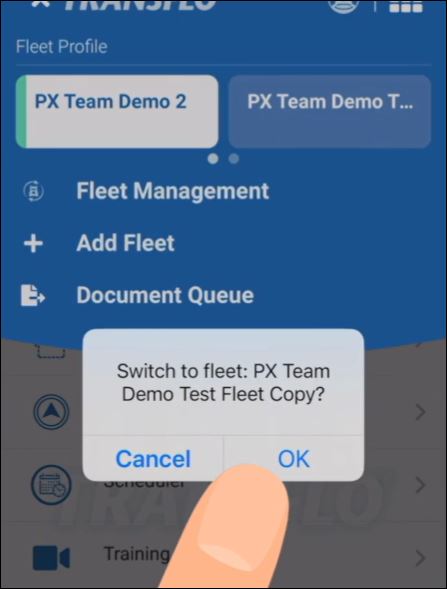 Your recent fleets appear in the quick access horizontal scroll area. To swap fleets, tap a fleet. At the prompt to confirm the fleet switch, tap OK.