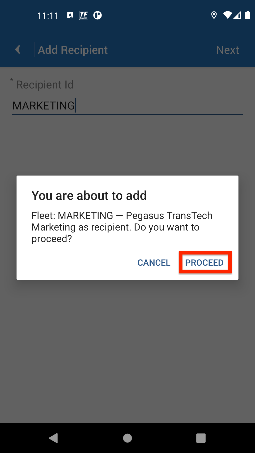 For your Fleet ID or Broker ID to work, your Fleet or must be authorized to use the app. Recipients are entities that receive documents from the Mobile+ application. Examples of Recipients are Fleets and Brokers.