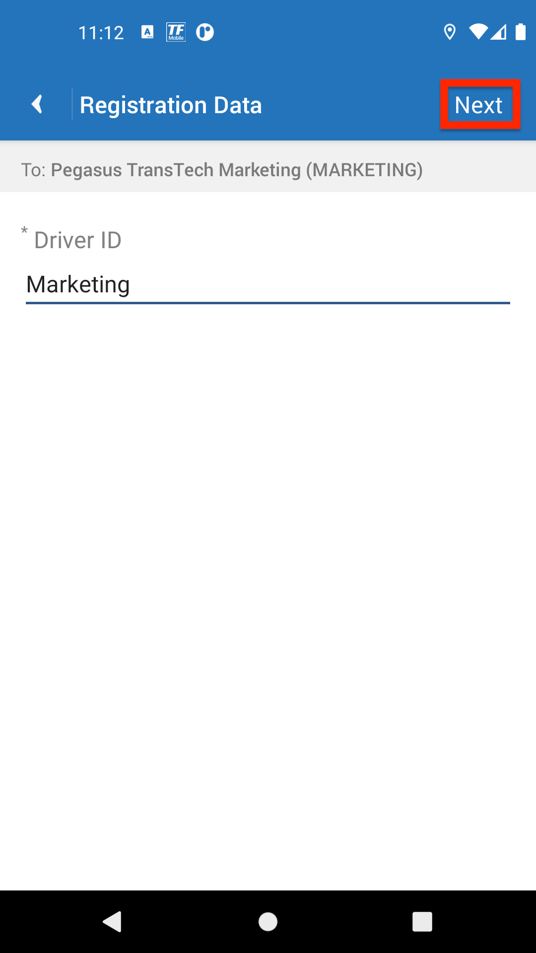Enter the Driver ID (this can be any name of your choice) and then tap Next.