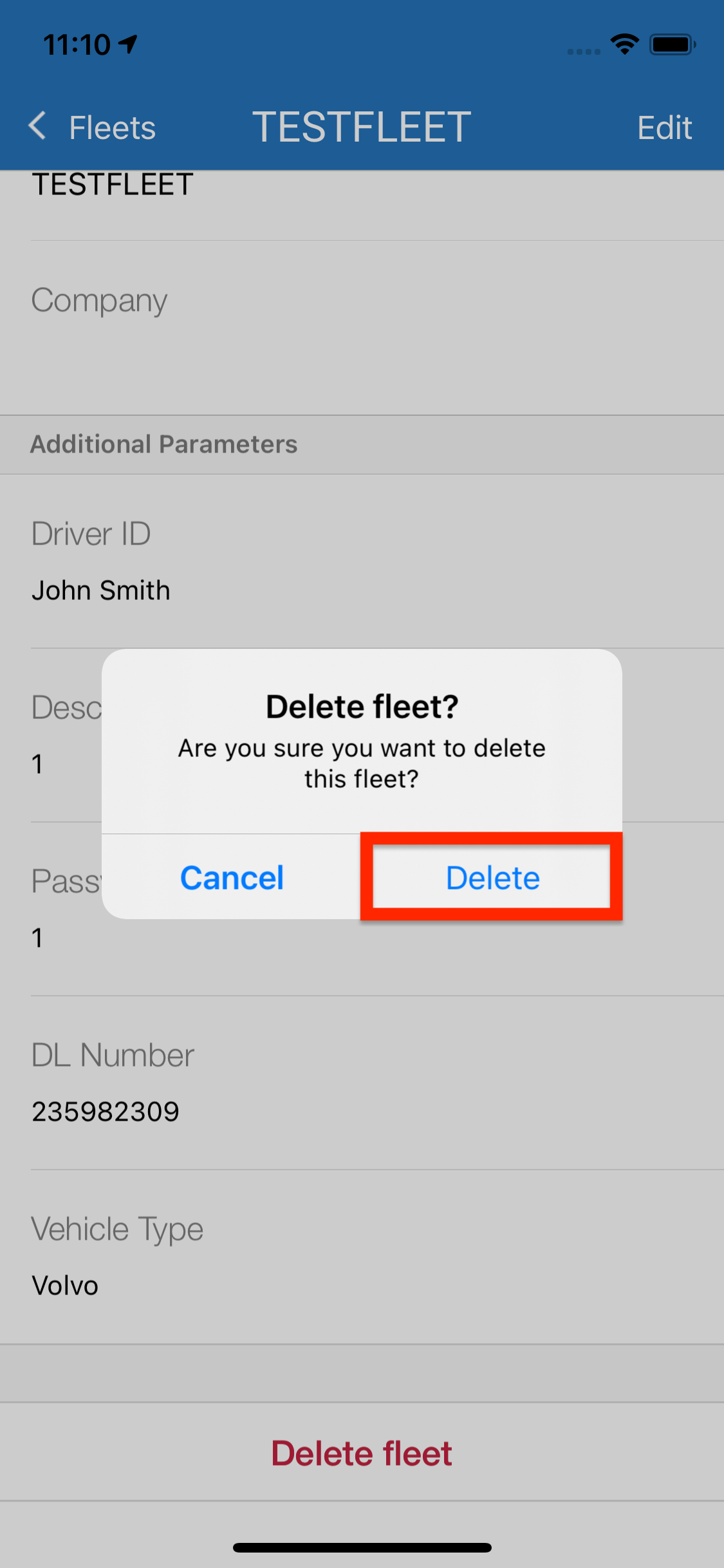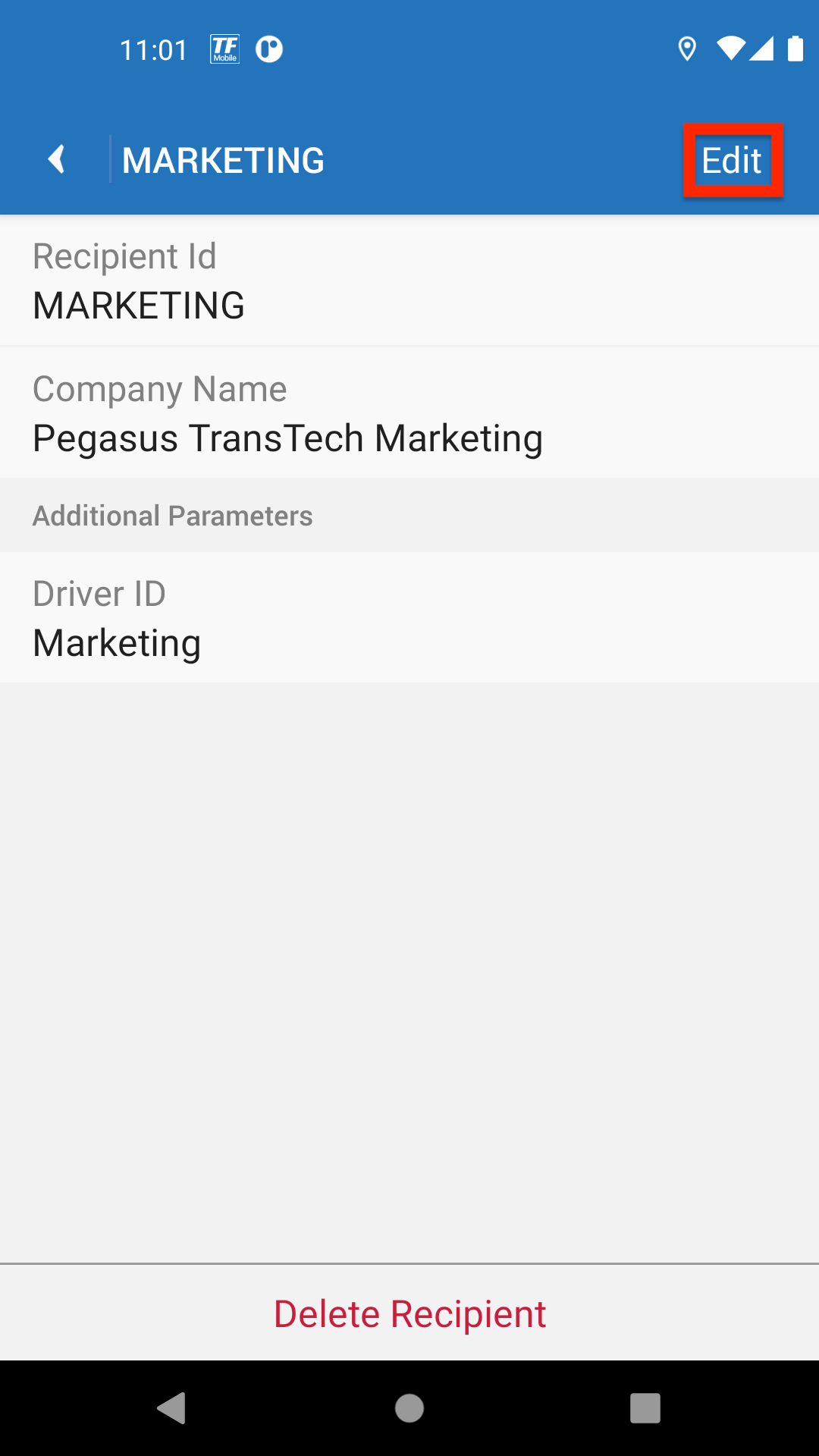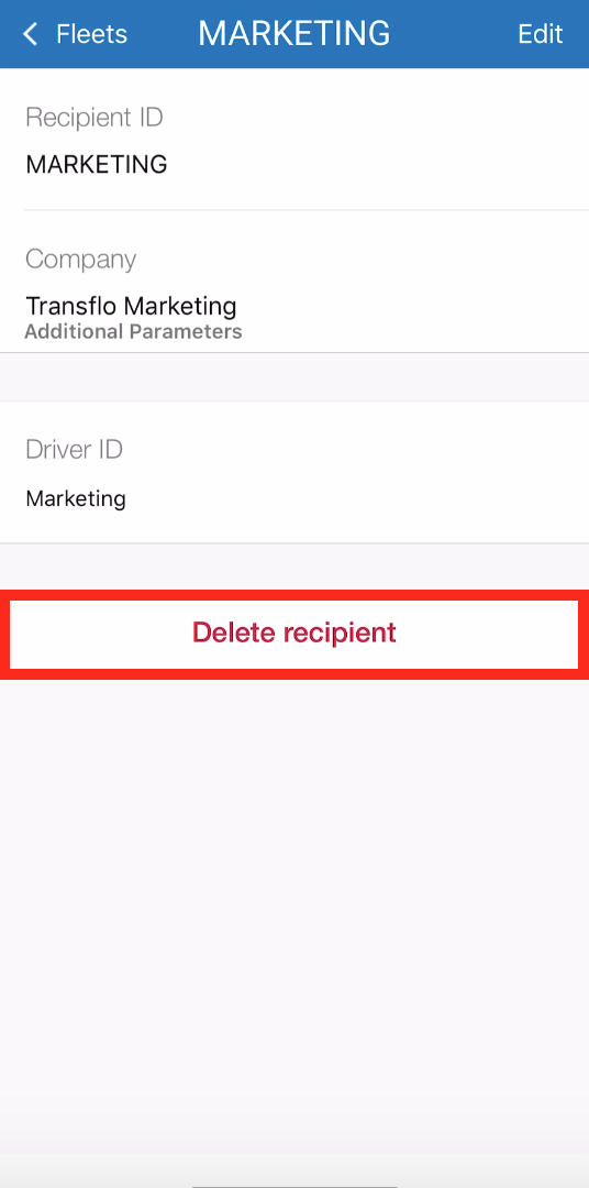 To edit the Driver ID or Fleet ID (also known as the Recipient ID), tap Edit in the top right corner.