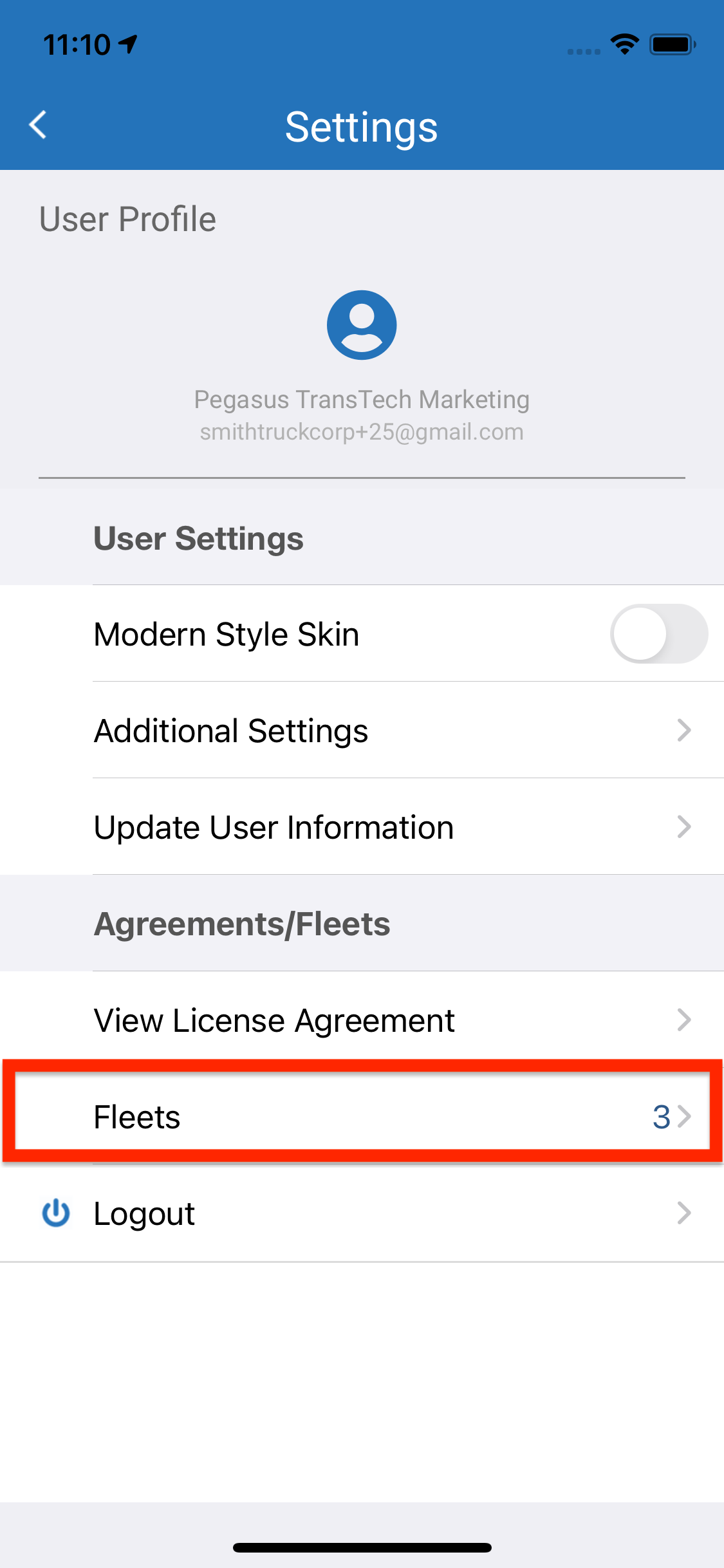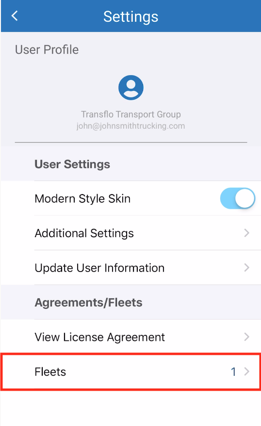 On the Settings page, under Agreements/Fleets, tap Fleets.