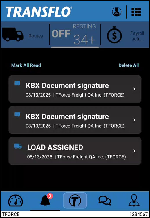 Be sure to keep an eye out for new notifications. They help you know when an electronic signature has been received, when a new load is assigned to you, and other important events.