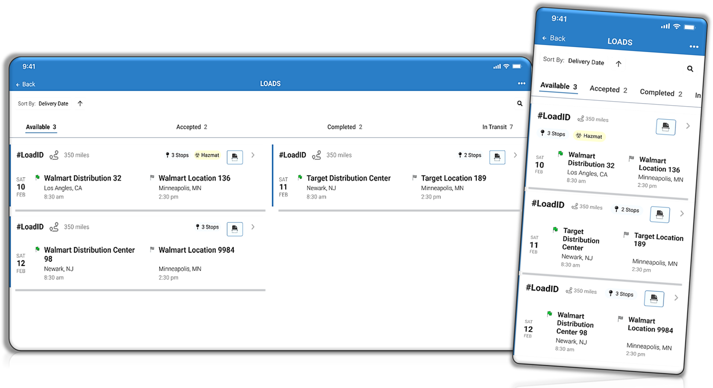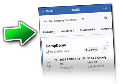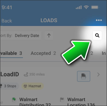 As a driver, follow these simple steps to get to a list of loads where you can search, sort, and get more load details as you need.
