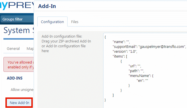 As an administrator or implementation engineer, follow the steps below to configure a new Geotab add-in.