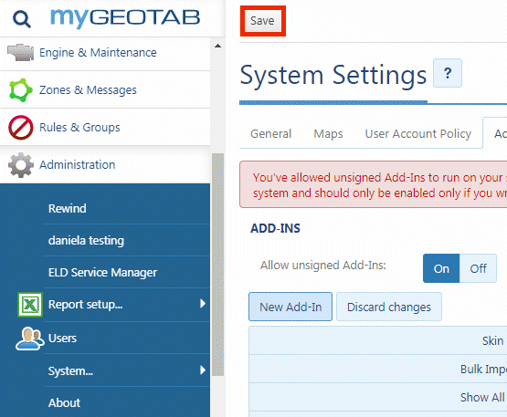 Click Save to retain the add-in in the database.