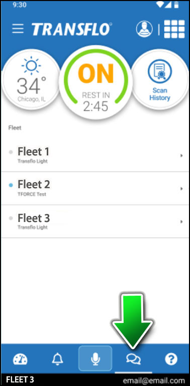 If you have more than one fleet associated with your profile, the Messages screen appears. Tap the fleet that you want to communicate with. If you only have one fleet on your profile, the Chat screen opens.