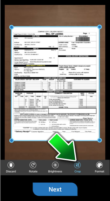 Tip 1: Many fleets take advantage of a global Transflo feature that automatically sets the document format based on the document type. For example, all invoices might be set to color and all BOLs might be set to black and white. In these environments, the Format button is hidden and you can safely continue to the next step.