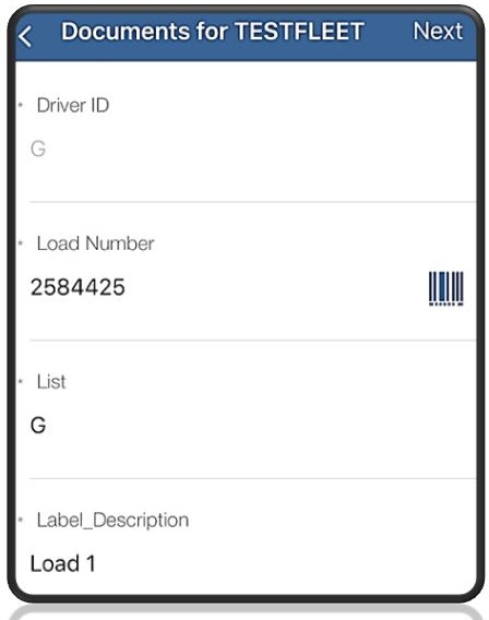 In the Load Number field, tap the bar code icon to scan any bar codes related to that specific load. A new screen appears where you can scan the bar code and attach the image to the load.
