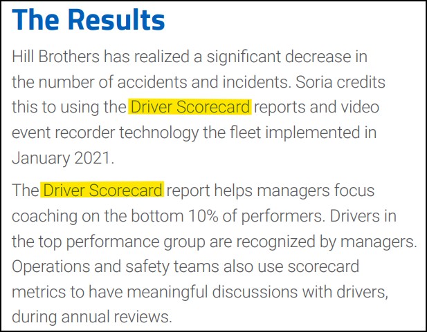 Keywords: Safety video hard braking score scorecard score card driver scorecard driver score card