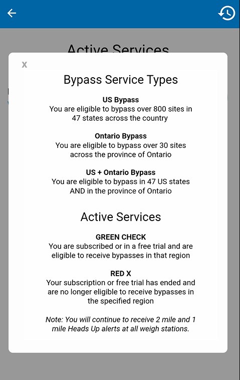 After starting Drivewyze, you can view your last bypass.
