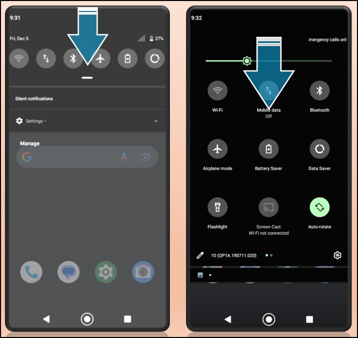 Go to your Android or iOS settings and turn on your data plan connection or a local public or private wireless network (Wi-Fi) connection.