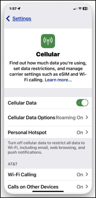 You can turn on mobile data. Also make sure Cellular Roaming is turned ON.