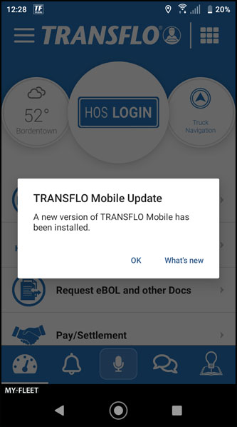Transflo Mobile Update: A new version of TRANSFLO Mobile has been installed.