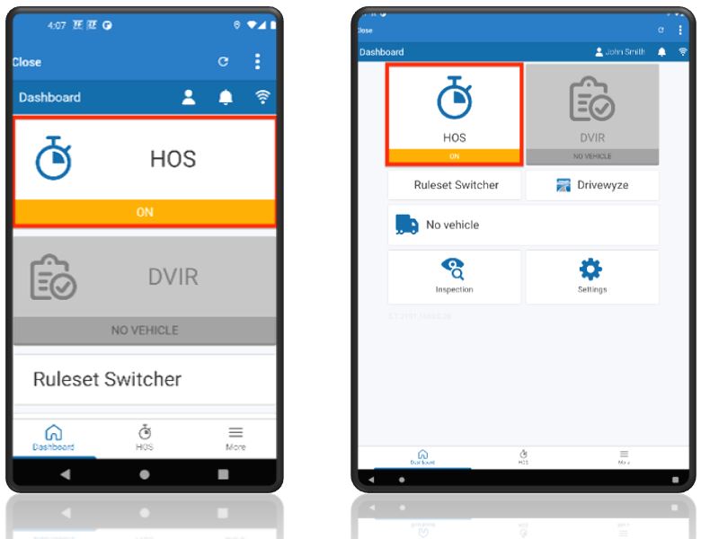 To view the violation countdown bar and timer, tap the HOS menu item, tile, or dial.
